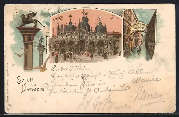 Lithographie Venezia, Ponte dei Sospiri, Basilica S. Marco