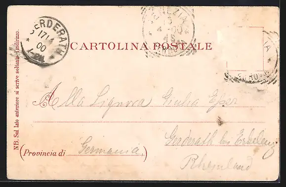 gelaufen 1900, Briefmarke entfernt, rückseitig Oberflächenschaden, guter Zustand