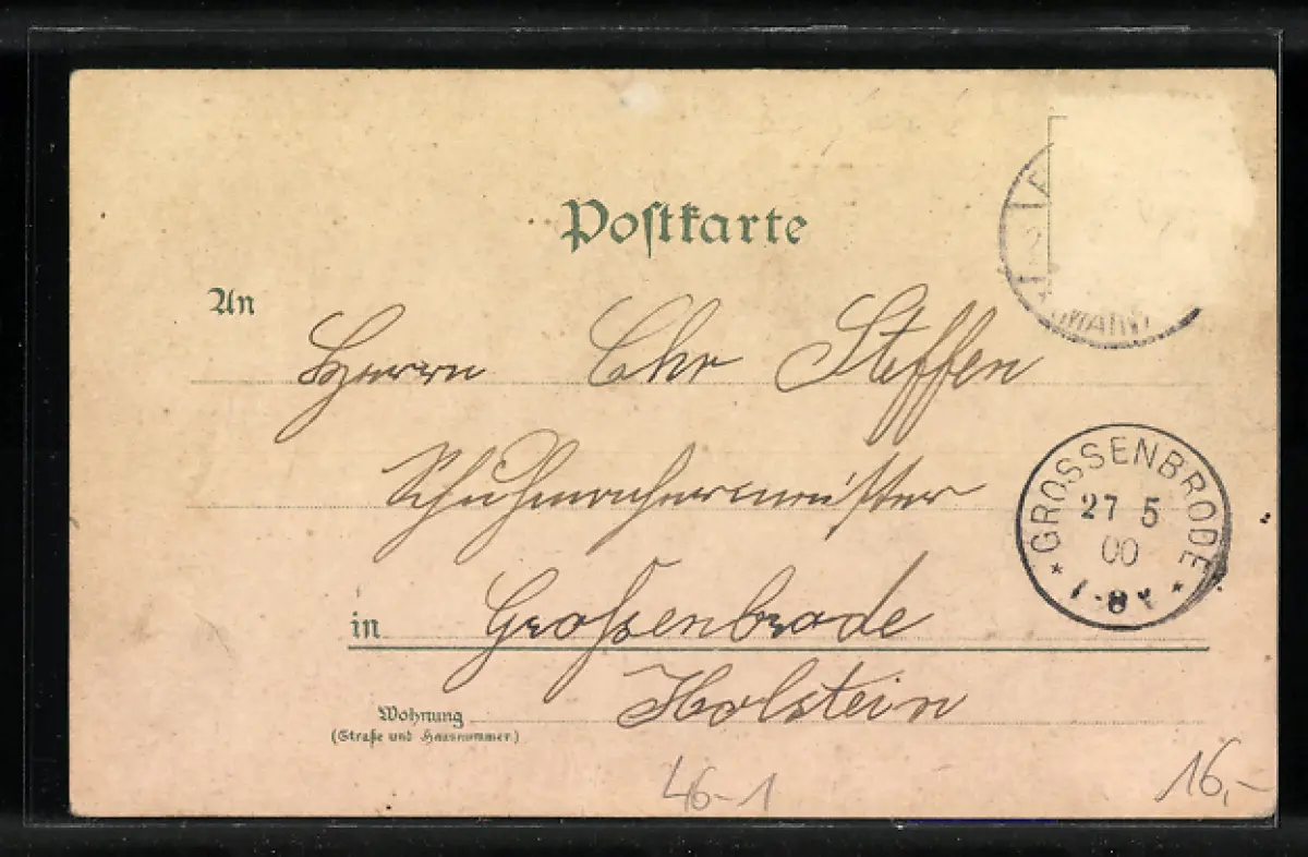 gelaufen 1900, Briefmarke entfernt, Eckknick li. oben, guter Zustand