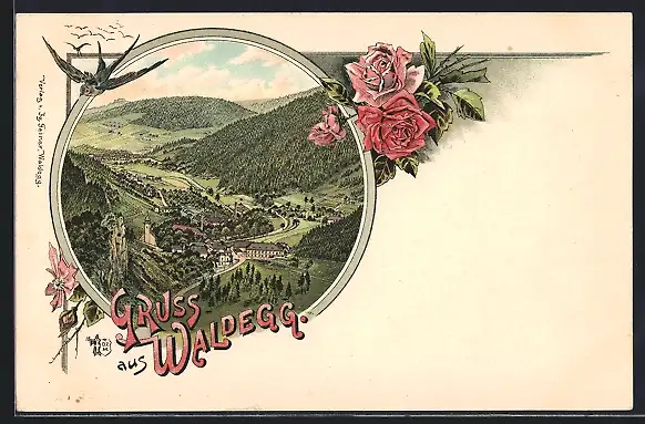 Lithographie Waldegg, Ortsansicht bei Tag, Rosenzweig