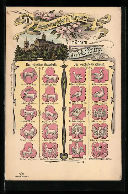 Lithographie Wartburg, das menschliche Leben in Thiergestalt