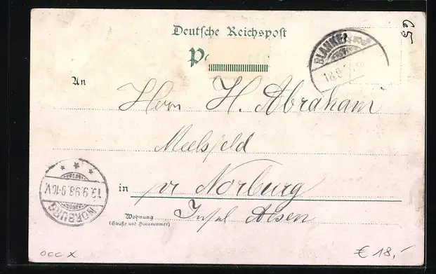 gelaufen 1898, Briefmarke entfernt, guter Zustand