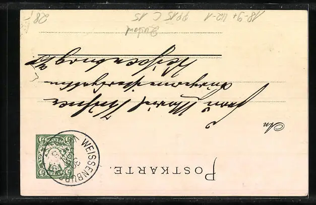 gelaufen 1899, Eckknick li. unten, minimaler Einriss li. unten, Bugspur li. unten, guter Zustand