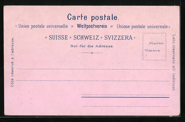 Personenbezogene Daten auf der Rückseite der Karte wurden durch blauen Textmarker unkenntlich gemacht. Die blauen Stellen sind auf die Vorderseite durchgeweicht und wirken sich negativ auf das Postkartenfoto aus
