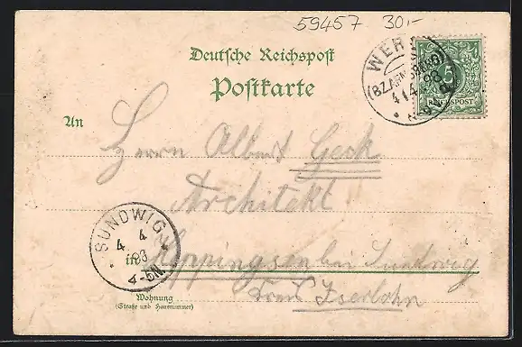 gelaufen 1898, Eckknick re. unten, Bugspur unten mittig, guter Zustand