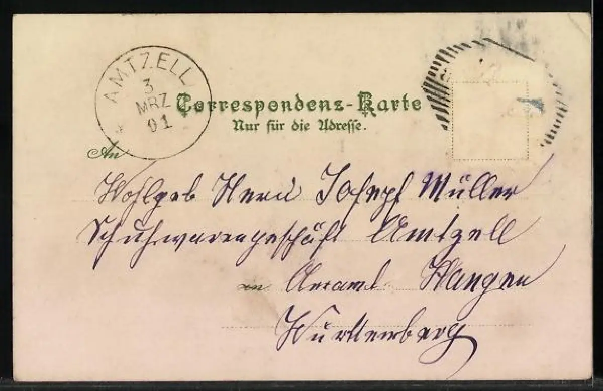 gelaufen 1901, Briefmarke entfernt, rückseitig Oberflächenschaden, Eckknick li. oben, Stempelspur, guter Zustand