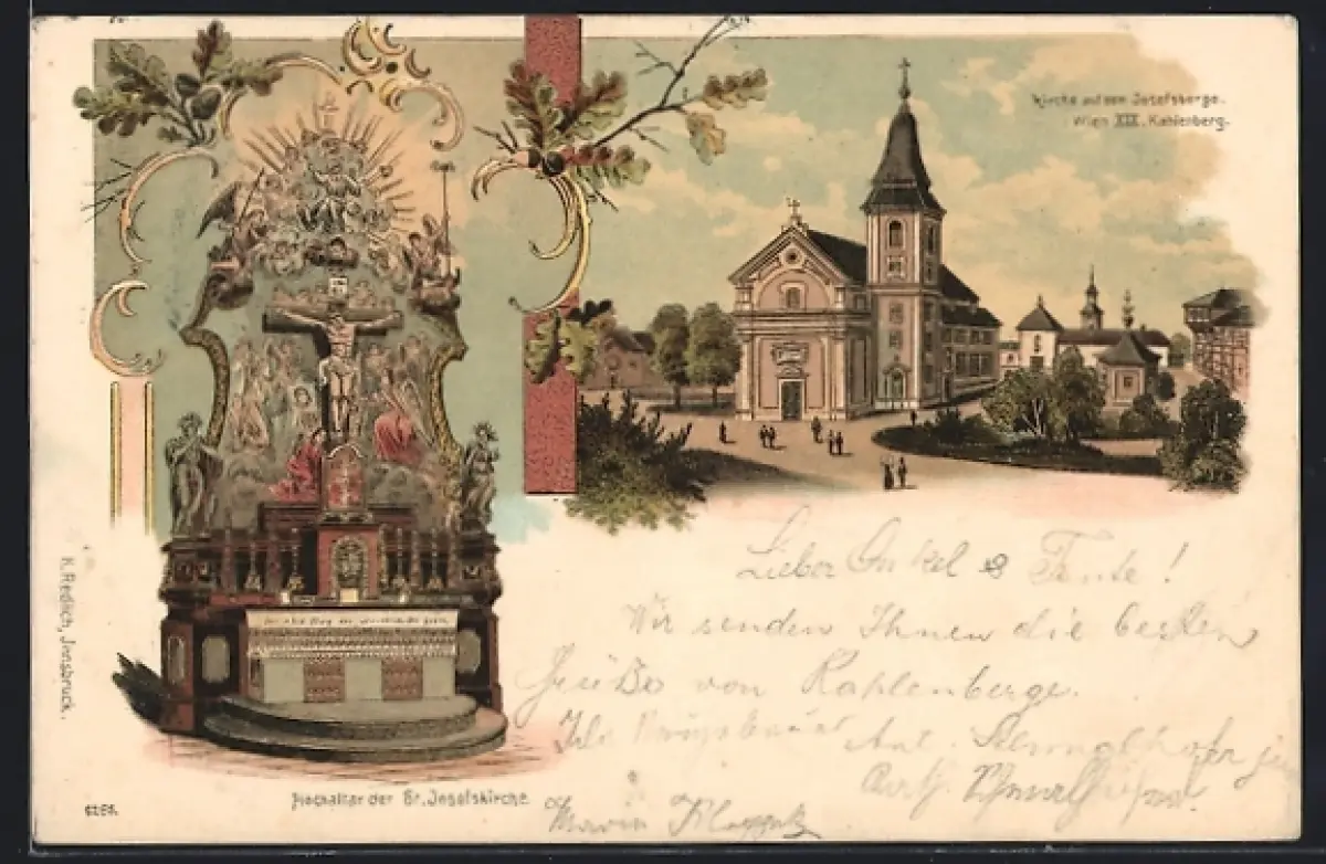 Lithographie Wien, Kahlenberg, Kirche auf dem Josefsberge, Hochaltar der St. Josefskirche