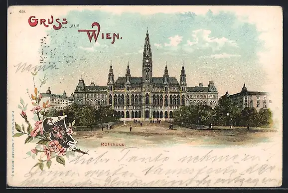 Lithographie Wien, Rathaus, Blumenschmuck