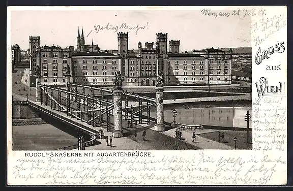Lithographie Wien, Rudolfkaserne mit Augartenbrücke