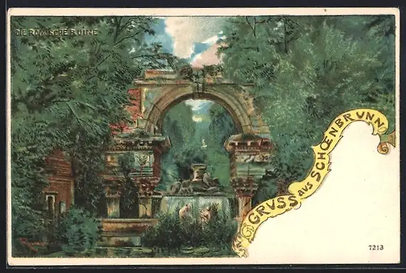 Lithographie Wien, Schönbrunn, Römische Ruine