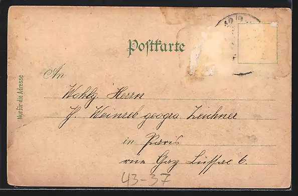 gelaufen, Briefmarke entfernt, rückseitig Oberflächenschaden, guter Zustand