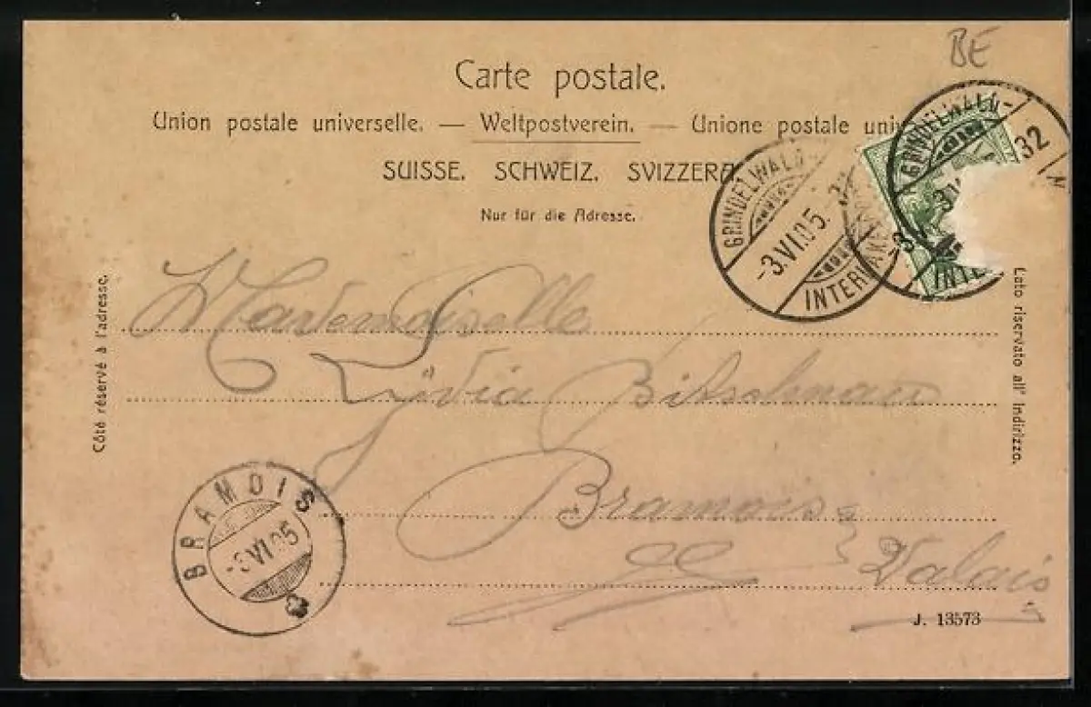 gelaufen 1905, Briefmarke entfernt, rückseitig Oberflächenschaden, guter Zustand