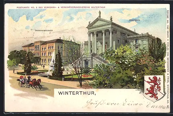 Lithographie Winterthur, Primarschulhaus, Wappen