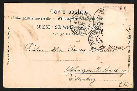 gelaufen 1898, Briefmarke entfernt, rückseitig Oberflächenschaden, Stempelspur, guter Zustand