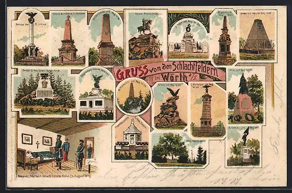 Lithographie Wörth, Kronprinz Fried. Wilh. besucht General Raoul, Denkm. d. Pos. Gren. Regt. No. 6