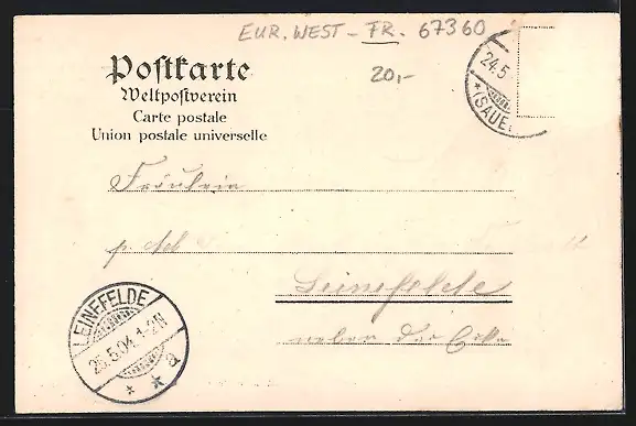 gelaufen 1904, Briefmarke entfernt, rückseitig Oberflächenschaden, guter Zustand