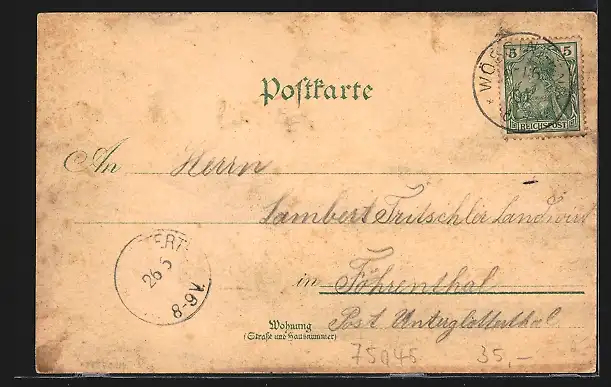gelaufen 1901, Eckknick li. unten, guter Zustand