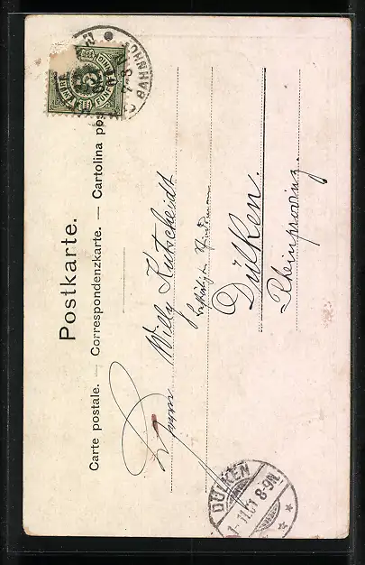 gelaufen 1901, Eckknick unten li., Stempelspur, guter Zustand