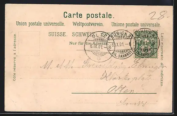 gelaufen 1901, Eckknick re. unten, guter Zustand