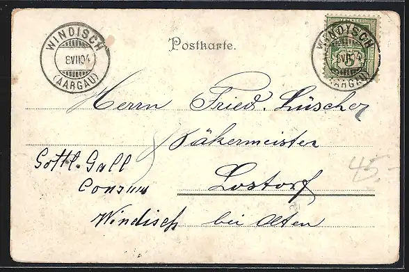 gelaufen 1904, rückseitig Oberflächenschaden, Eckknick li. oben, guter Zustand