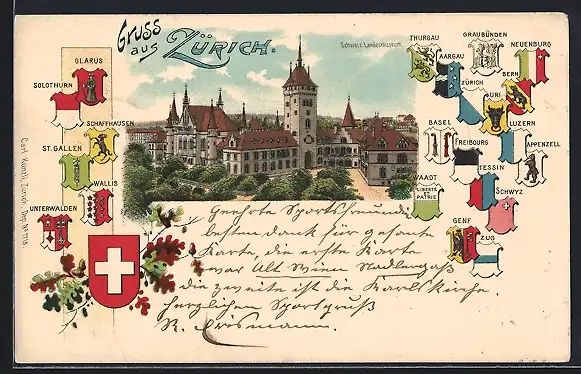 Lithographie Zürich, Schweiz. Landesmuseum, Wappen der versch. Kantone