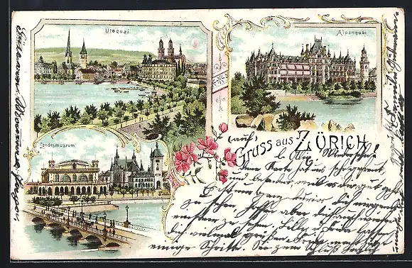 Lithographie Zürich, Uroquai, Landesmusem, Alpenquai