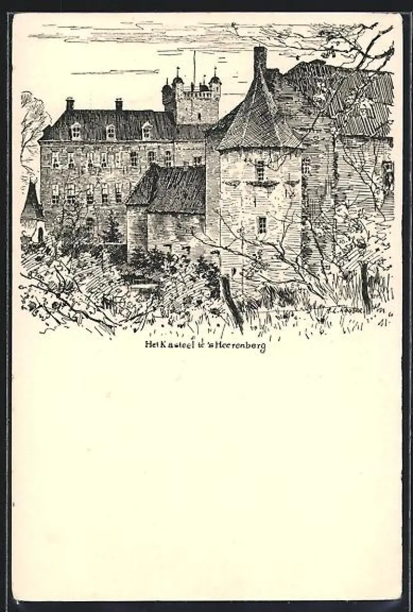 Lithographie `s Heerenberg, Het Kasteel, Ansicht vom Kastell