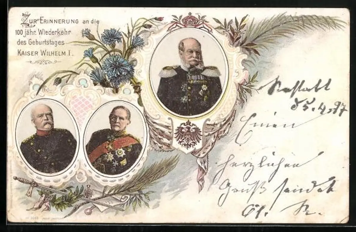 Lithographie zur Erinnerung an die 100 jähr. Wiederkehr des Geburtstages Kaiser Wilhelm I. in Uniform
