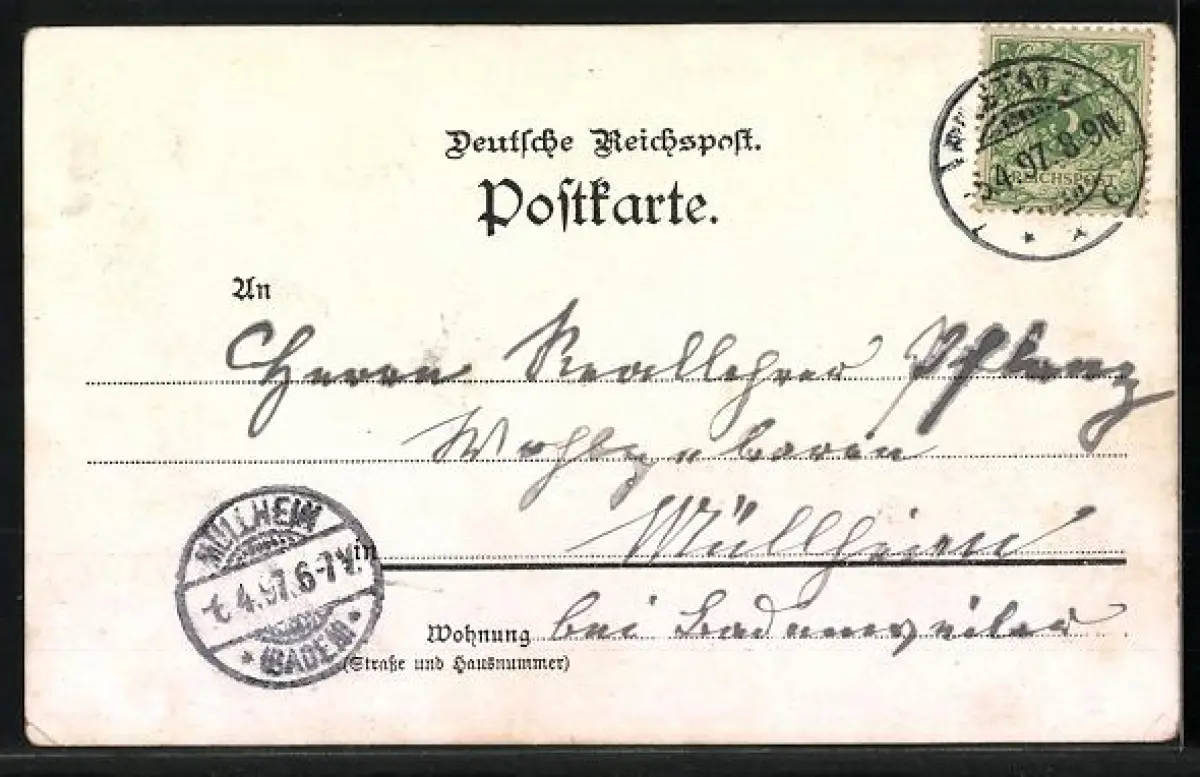 gelaufen 1897, Eckknick li. unten, guter Zustand