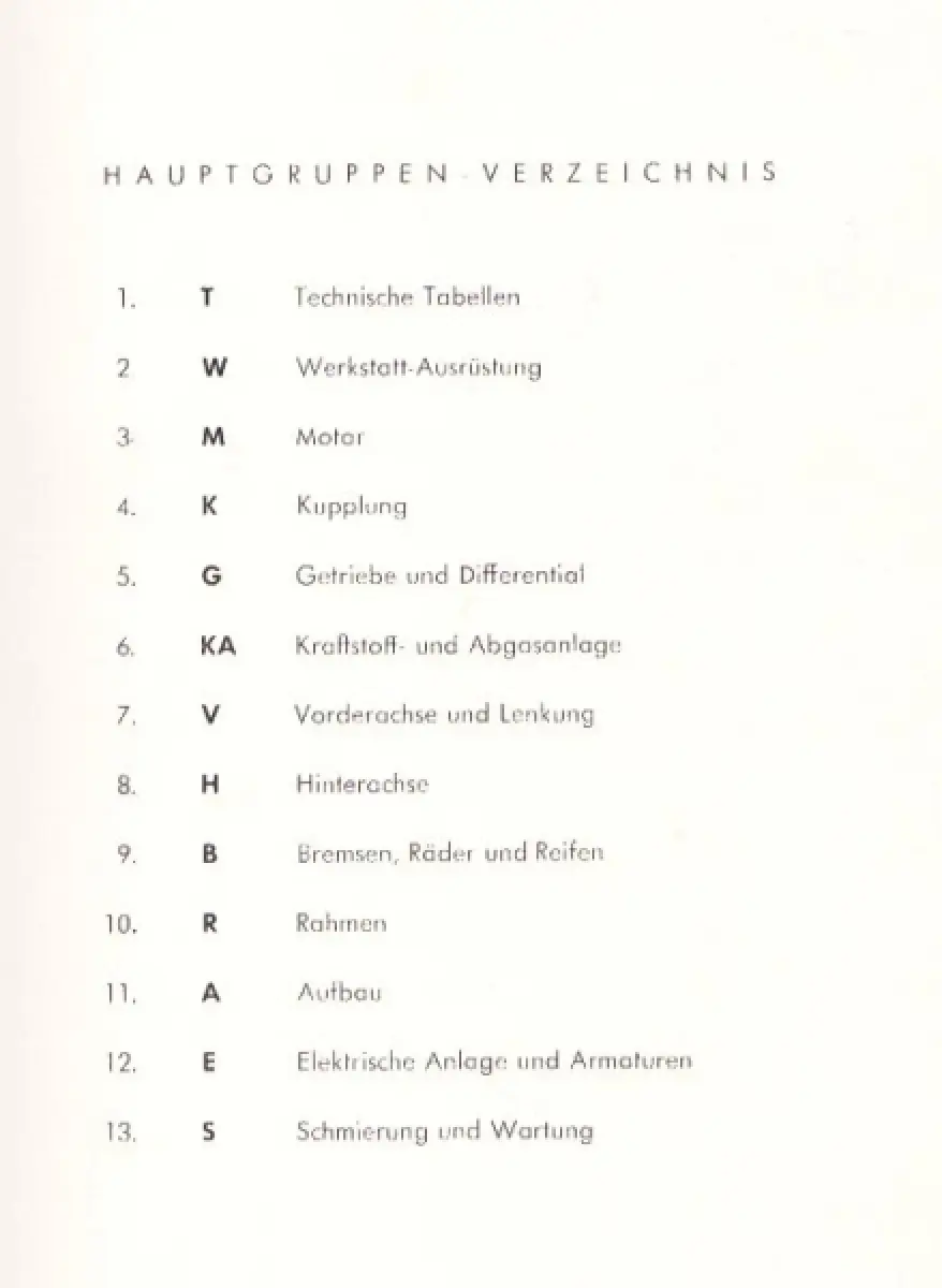 Ca. 300 Seiten DinA4 Technische Daten, Werkstattausrüstung, Motor, Kupplung, Getriebe und Differenzial, Kraftstoff und Abgasanlage, Vorderachse und Lenkung, Hinterachse, Bremsen, Rahmen (fehlt), Aufbau (fehlt) Elektrische Anlage, Schmierung und Wartung Nachträge bis 1959 sind einsortiert Leichte Gebrauchsspuren, leider fehlen 2 Hauptgruppen