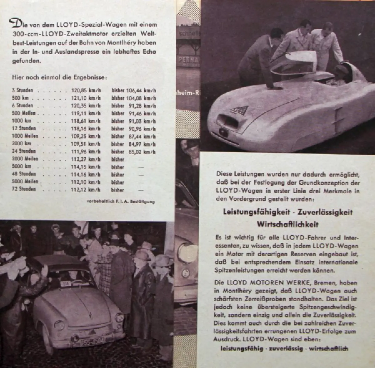 Lloyd Modellprogramm 1953 "Internationale Rekorde" Automobilprospekt (10006)