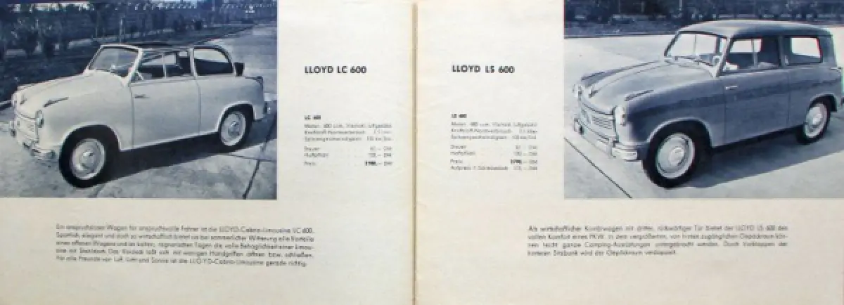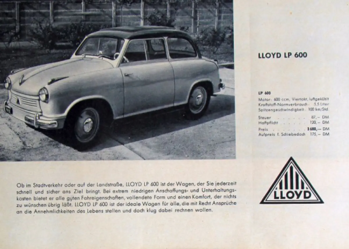 Lloyd Modellprogramm 1954 Automobilprospekt (10136)