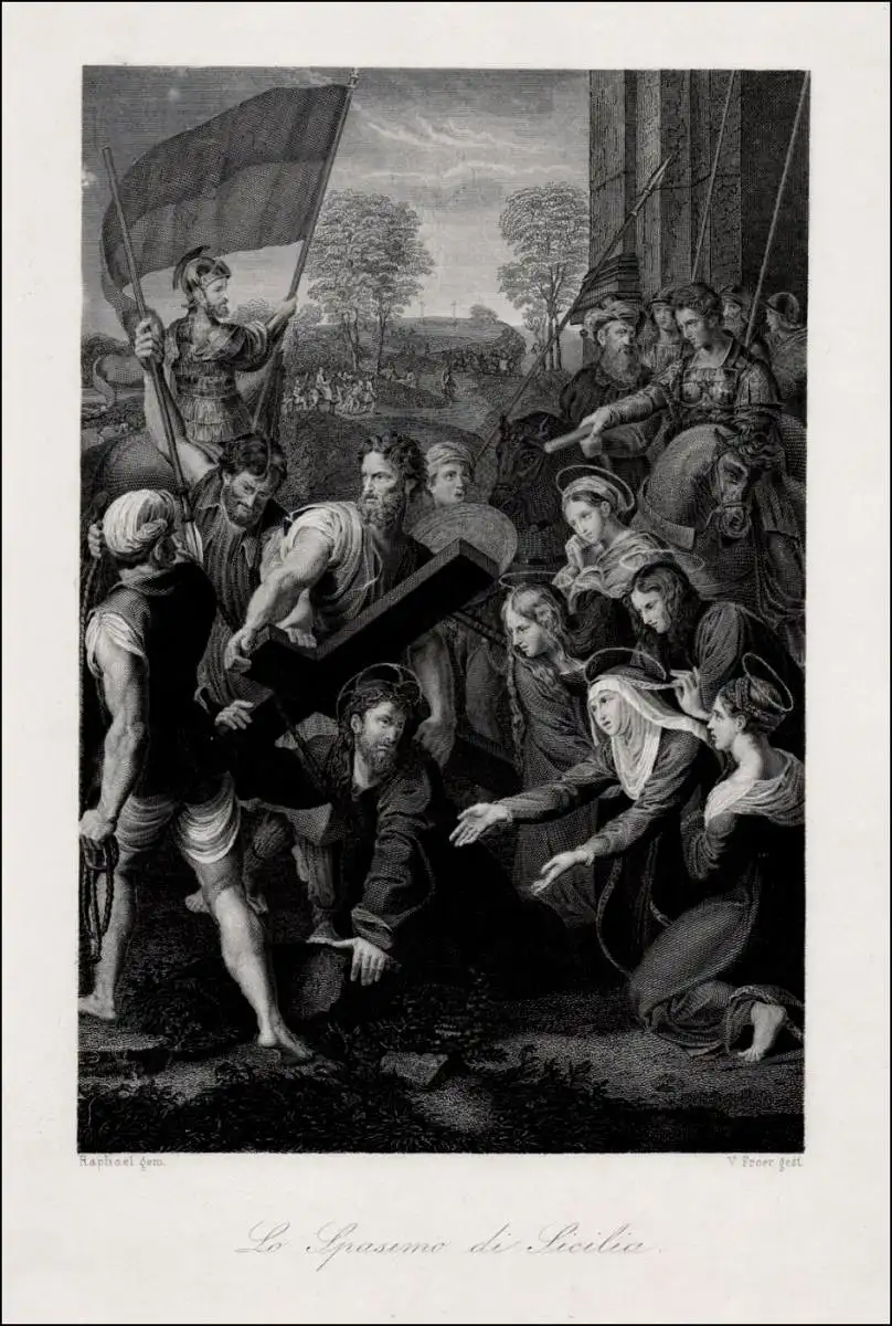 Lo spasimo di sicilia. Originaler Stahlstich nach Raphael, um 1850