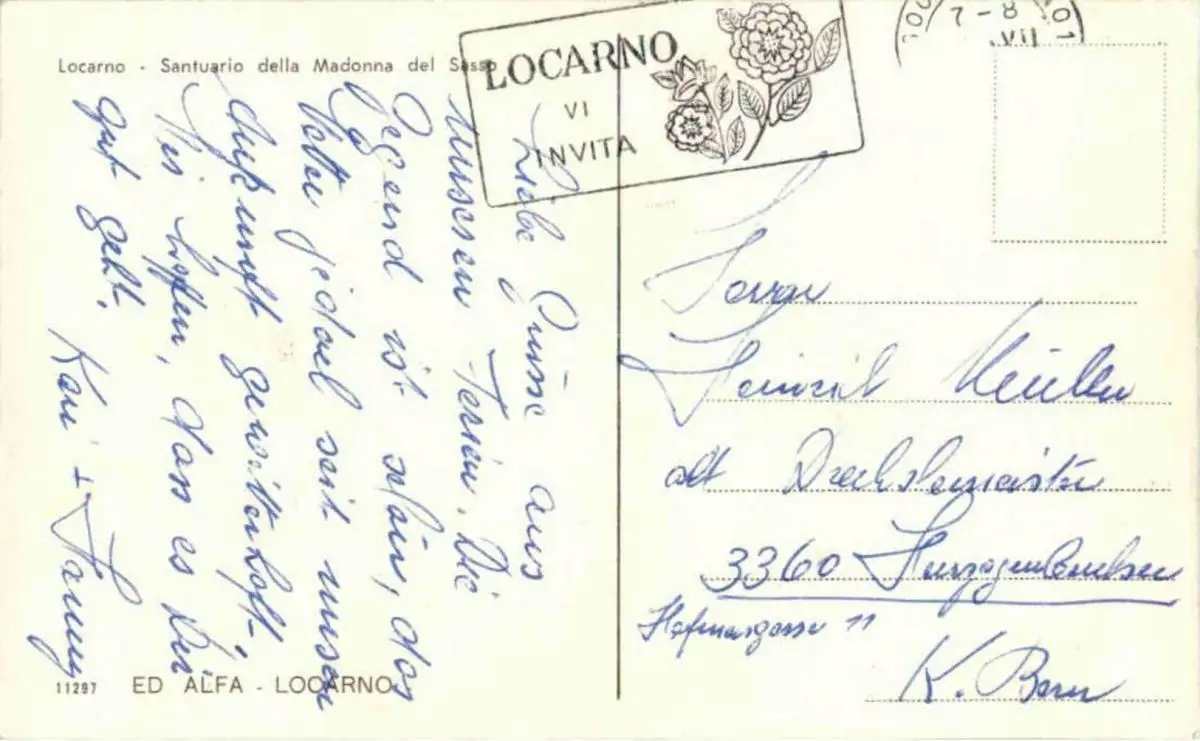 Danke. Alles Bestens. Können Sie mir allenfalls mitteilen, aus welchem Jahr die Postkarte stammt? Besten Dank.