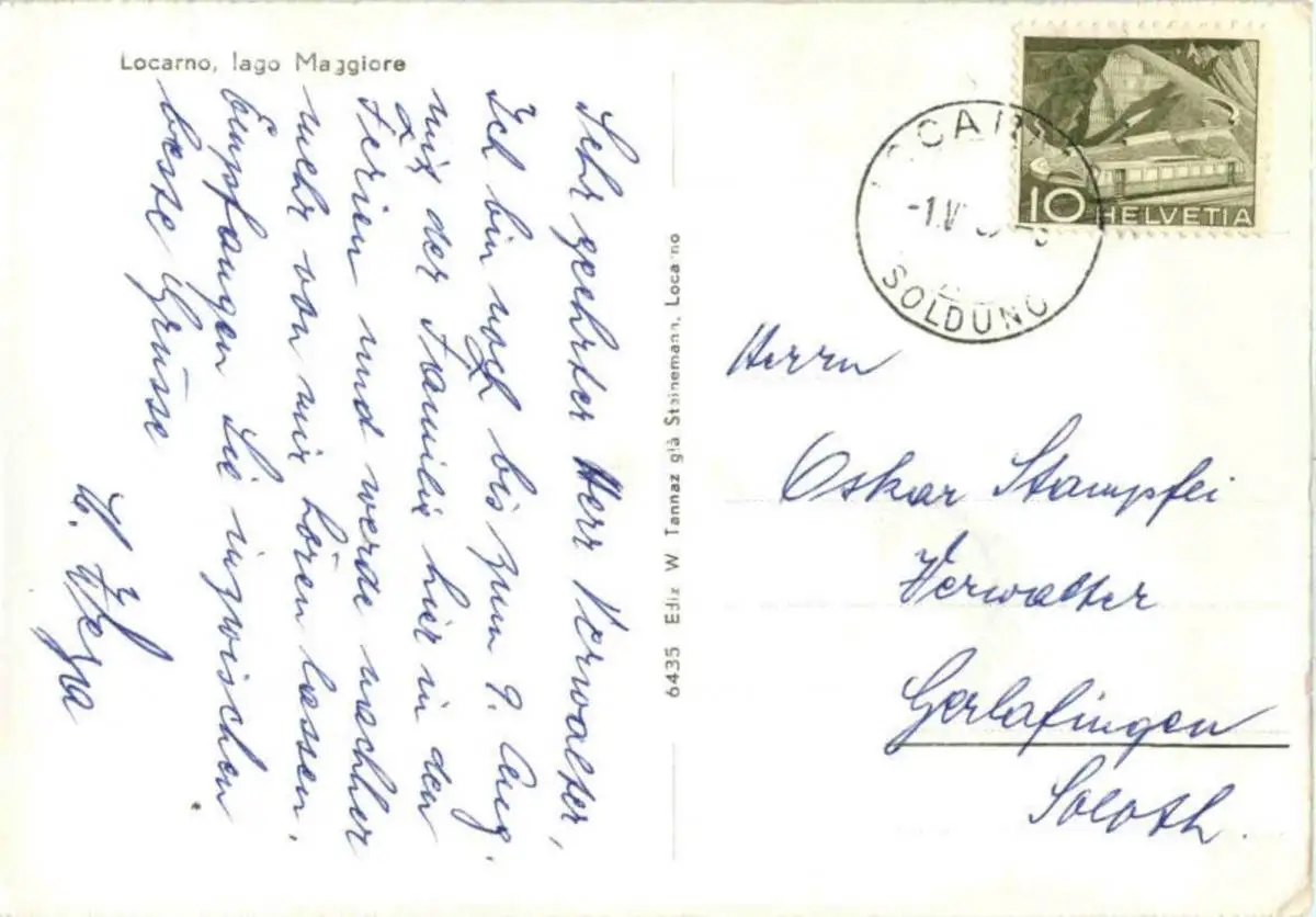 Danke. Alles Bestens. Können Sie mir allenfalls mitteilen, aus welchem Jahr die Postkarte stammt? Besten Dank.