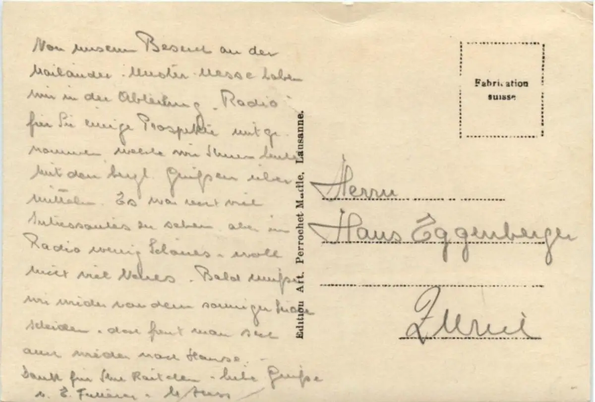 Danke. Alles Bestens. Können Sie mir allenfalls mitteilen, aus welchem Jahr die Postkarte stammt? Besten Dank.