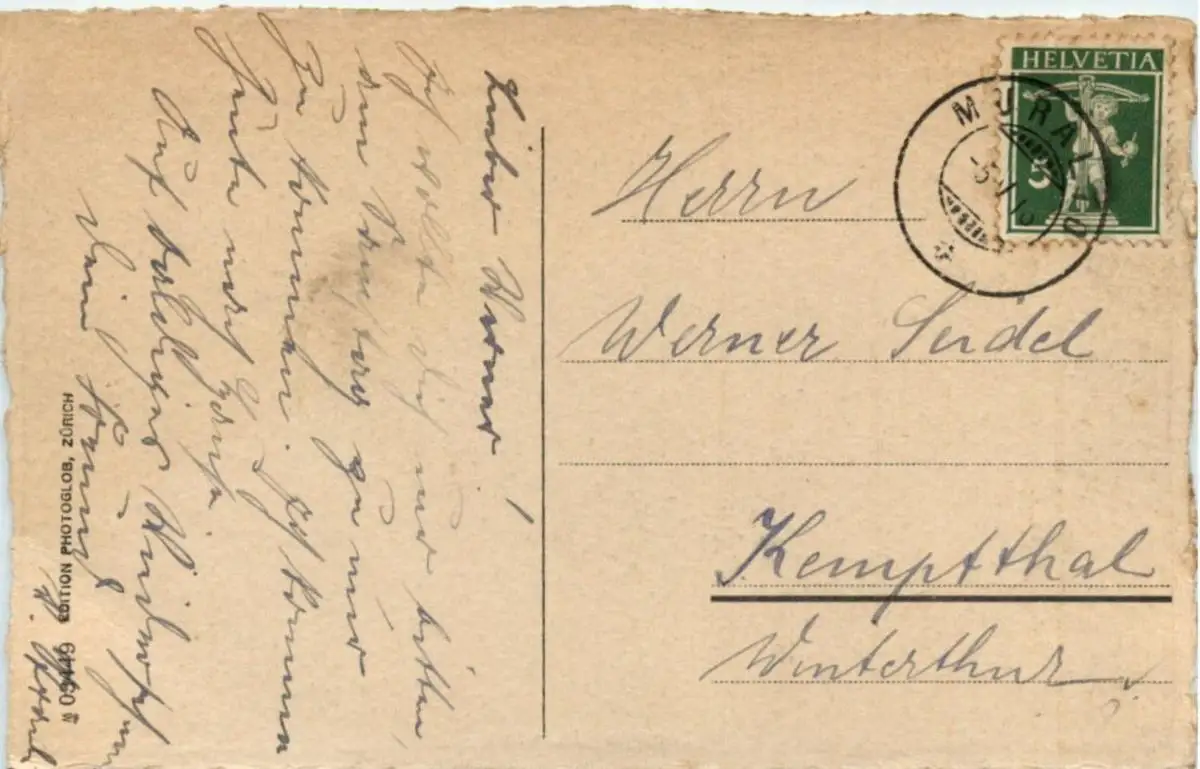 Danke. Alles Bestens. Können Sie mir allenfalls mitteilen, aus welchem Jahr die Postkarte stammt? Besten Dank.