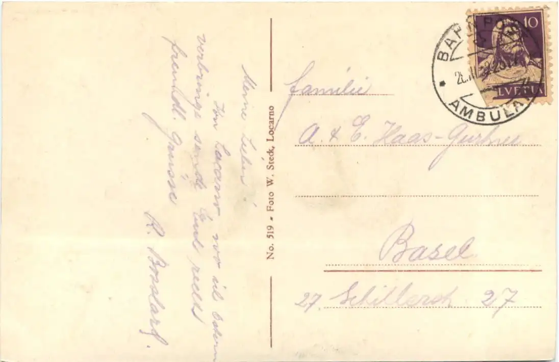 Danke. Alles Bestens. Können Sie mir allenfalls mitteilen, aus welchem Jahr die Postkarte stammt? Besten Dank.