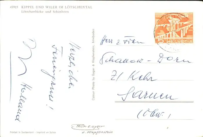 Loetschental Kippel Wiler Loetschenluecke Schinhorn Kippel postalisch gelaufen nach 1965 Alte Ansichtskarte Postkarte hz Saufe