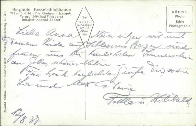 Verlag: Photo-Kunstanstalt und Verlag Oswald Kühne, Friedeberg Isergebirge