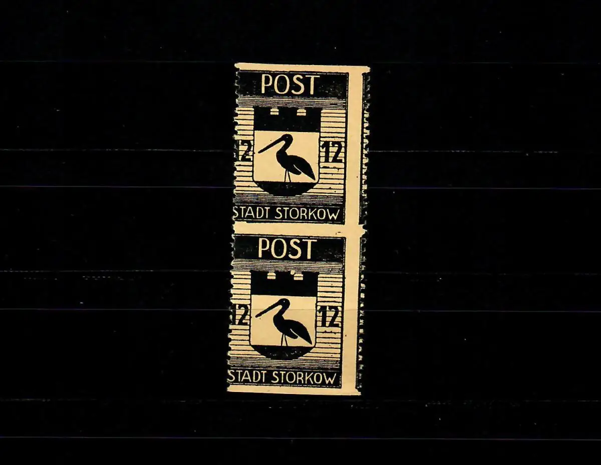Lokalausgabe Stadt Storkow: MiNr. 14 A Uw, postfrisch **, im senkrechten Paar