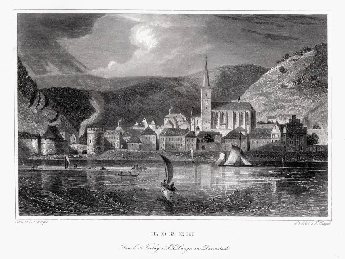 Lorch /Rhein. Gesamtansicht Originaler Stahlstich um 1850