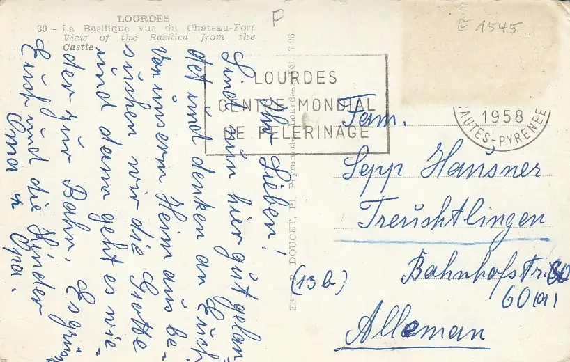 Lourdes, La Basilique vue du Château-Fort gl1958 E1545