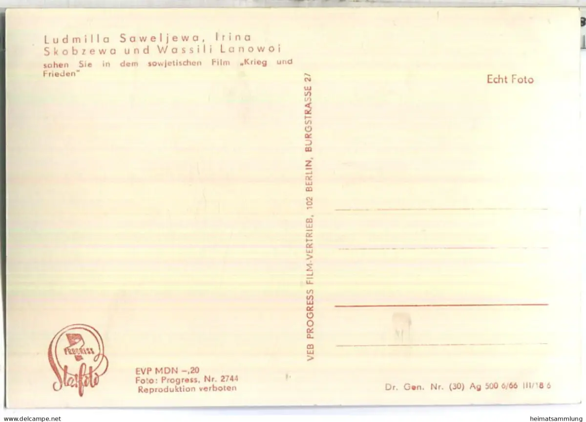 Ludmilla Saweljewa - Irina Skobzewa - Wassili Lanowoi - VEB Progress Film Vertrieb Berlin 1966