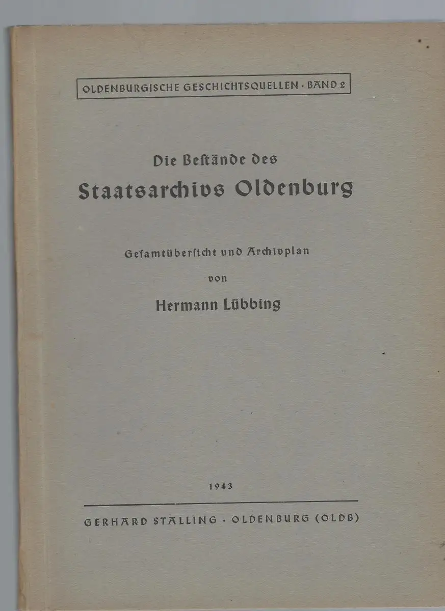 Lübbing, Hermann: Die Bestände des Staatsarchivs Oldenburg. Gesamtübersicht und Archivplan. Oldenburgische Geschichte Band 2.