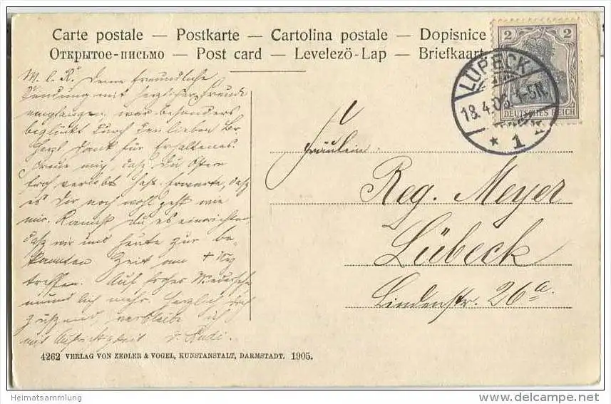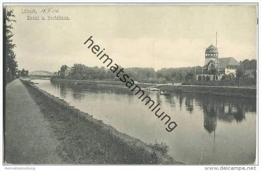 Lübeck - Kanal - Bootshaus - Verlag Zedler & Vogel Darmstadt - Gebrauchsspuren - kleiner Knick unten (G32627) gel. 1906