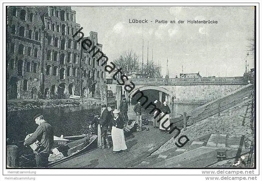Lübeck - Partie an der Holstenbrücke - Albumspuren (G21385) gel. 1919