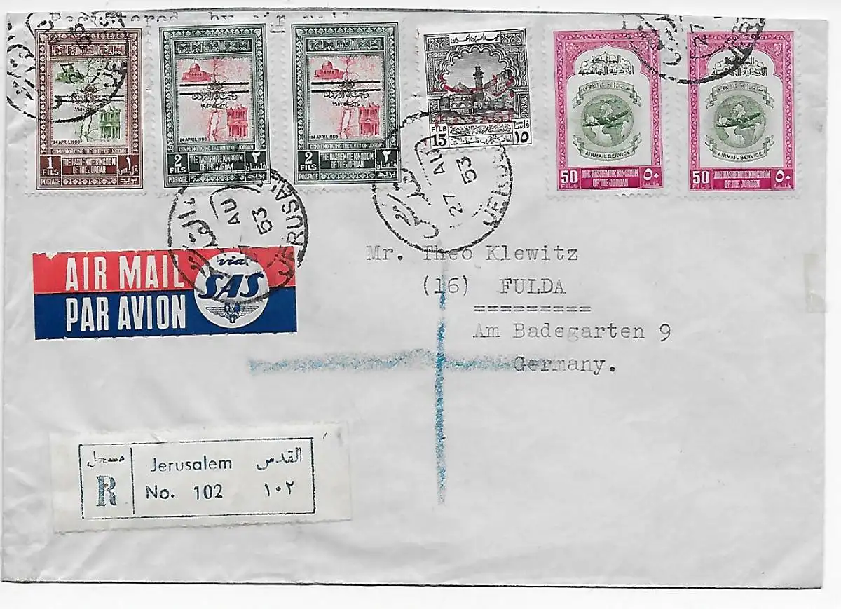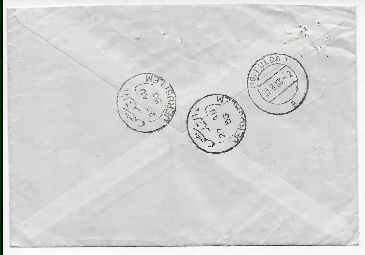 Luftpost Einschreiben Jerusalem nach Fulda 1953
