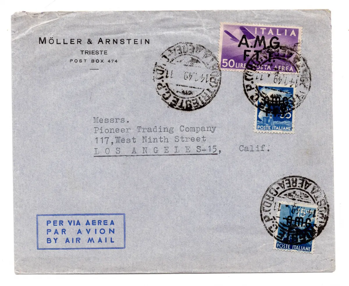 Luftpost Lire 50 Nr. 6 + Zusatzpost Nr. 12+15 auf Luftumschlag nach Los Angeles am 14.1.49 ohne Jahr. wie gewohnt ankommen - nicht philatelistische Nutzung im Tarif - Ungewöhnliche Nr. 1100/20