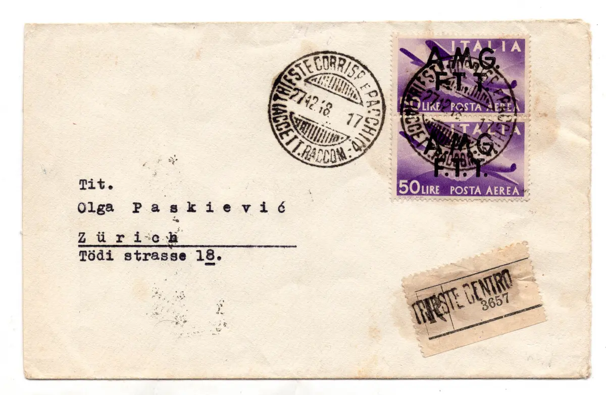Luftpost Lire 50 Nr. 6 Paar auf Umschlag Racc. für die Schweiz am 27.12.48 - Interessant im Tarif Nr. 1099/20